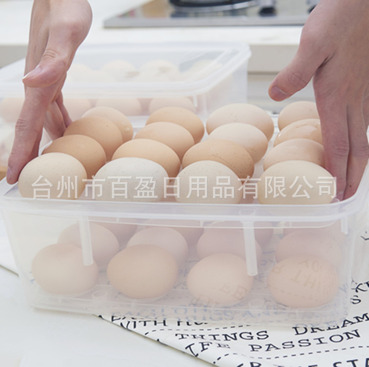 批发鸡蛋盒32格双层塑料保鲜盒 冰箱整理盒 收纳塑料盒鸡蛋整理盒